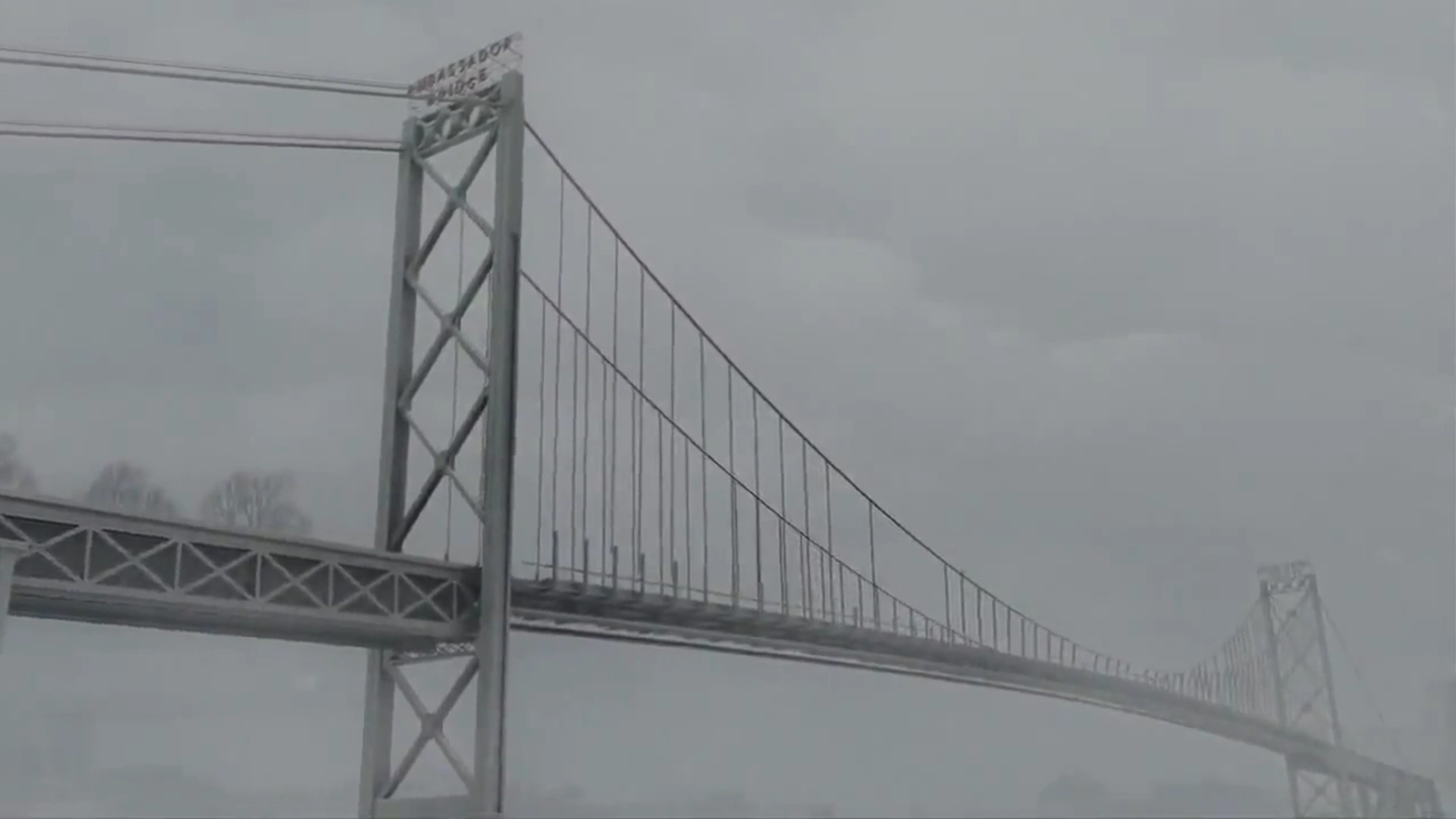 The Ambassador Bridge is featured in Roads to Nowhere starting four days after people when no trucks shuttle cargo over the Ambassador Bridge from Detroit to Canada.