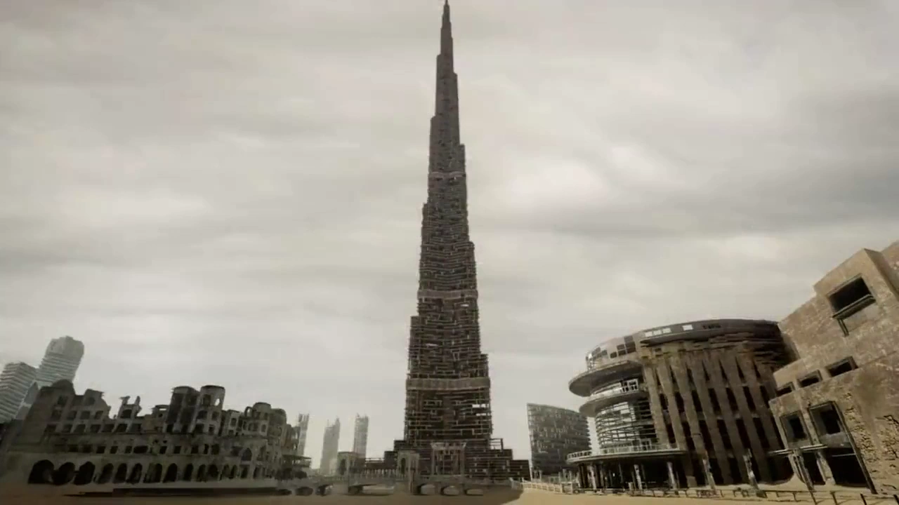 - The bird's eye view of the Burj Khalifa in 250 years showed no sandstorm blowing/forming on the left side of the structure, but it suddenly appears when the scenes are switched back to the collapse sequence. Another error also happened with the bottom left being empty initially but was filled with buildings that are duplicated from the right afterwards. It could also be an oversight.