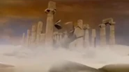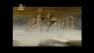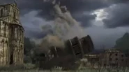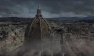 Firstly showing the concrete crumbles of the dome of St. Peter's Basilica after its support fails, then the sandstorm causing cracks of the pillars of the Temple of Juno, then vegetation on concrete and it's base cause the Leaning Tower of Pisa to weaken, and beginning crumbling and fall over, Florence Cathedral roof supports failing, and St. Mark's Campanile lean cause the spire to collapse. It then shows the total collapse of the Leaning Tower of Pisa, Florence Cathedral, St. Peter's Basilica, and the Colosseum, which collapse during the earthquake, while the Temple of Juno and St. Mark's Campanile only seen as partially collapse.