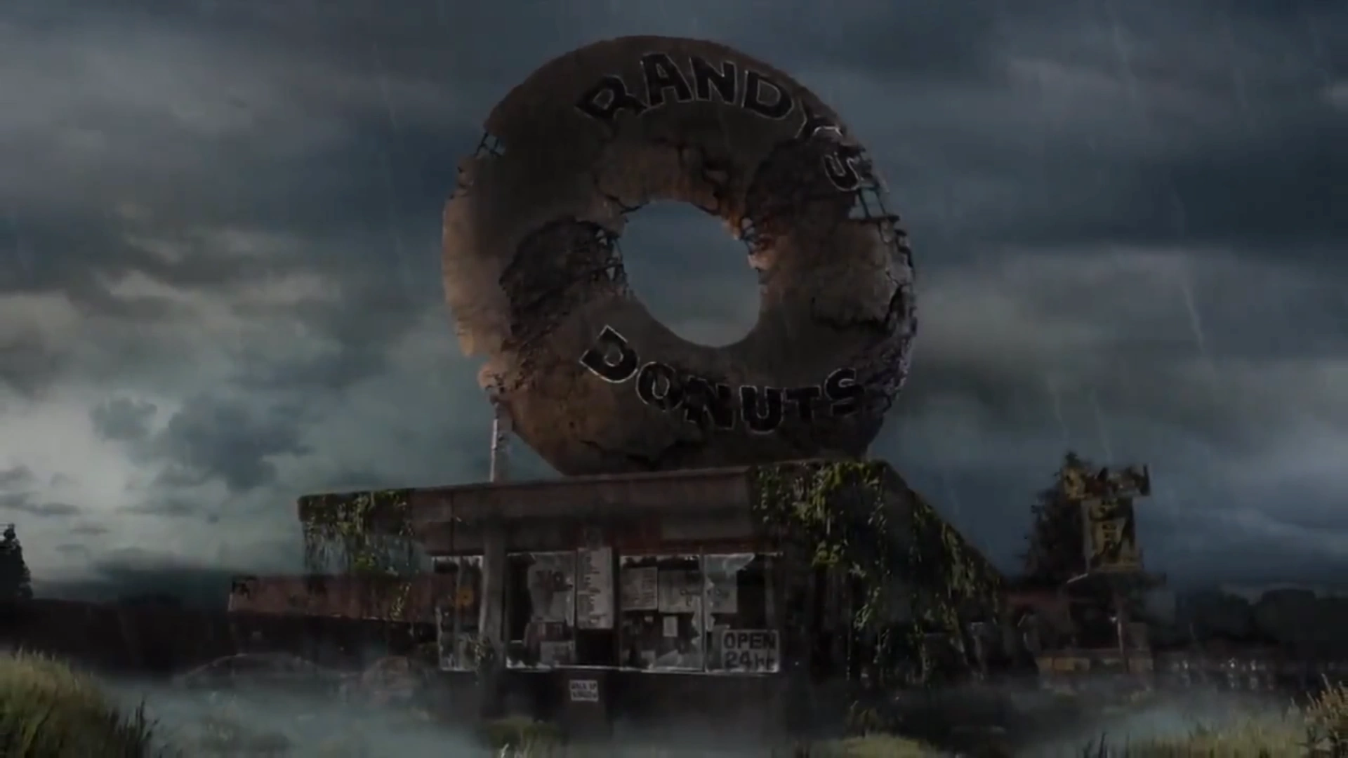 In 60 years after people, rainwater is eating away Randy's Donuts. Tanya Komas stated that water would pool inside of the donut at the bottom of the hollow portion making the base to fail first and the top of the donut would come down on top of it. Along with the hollow steel structure corroding, Randy's Donuts crumbles and the restaurant is destroyed in the process.[3]
